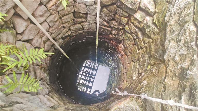 我仔细观察这口井:井口以片石砌成,内壁有供人上下清洗的凹槽,井水深不见底,却清澈得能映出人影。有住户接了水泵抽水,黑胶桶的绳索在井沿磨出了深深的凹痕。