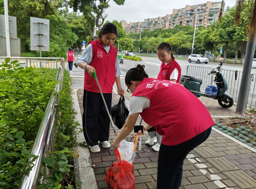 活动现场,一群身着红马甲的青少年们手持夹子、垃圾袋,认真地捡拾路面的烟头、果皮,甚至钻进绿化带,仔细地掏拾隐藏的塑料瓶、纸屑。他们相互配合,遇到难清理的污渍,便蹲下仔细处理,没有一个人喊累。