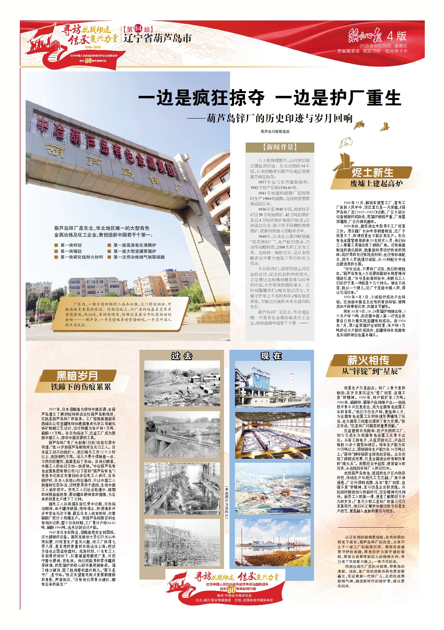 从辽东湾的硝烟里站起,在共和国的阳光下成长,葫芦岛锌厂的历史,从来不止于一座工厂的起落沉浮。那些在废墟里守护的夜晚,那些在炉火前守望的黎明,那些从祖辈传到后人的精神火种,早已成了民族复兴路上,一束不灭的光。
