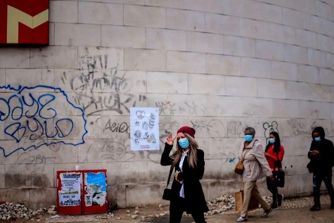 △当地时间10月28日,葡萄牙里斯本,民众戴口罩出行。