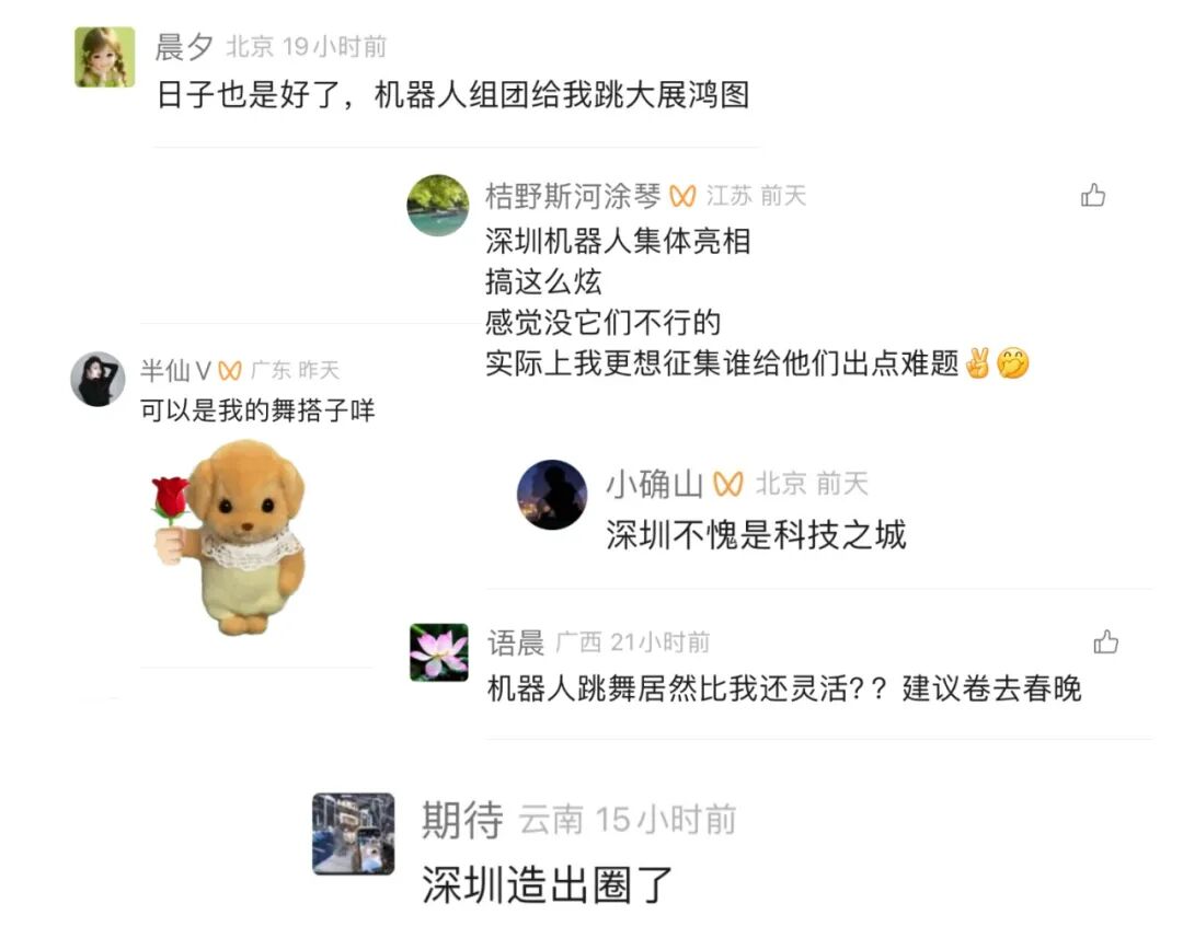 评论区有网友说“这是前所未有的视频”,有人直呼“太酷了”,也有人惊叹“这些全都是深圳的机器人吗?一个城市居然能有这么多机器人企业”。