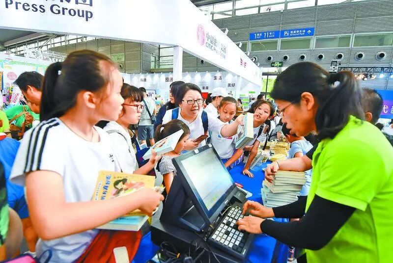 ▲第 28 届书博会上,丰富多样的书籍引得家长和孩子前来选购。