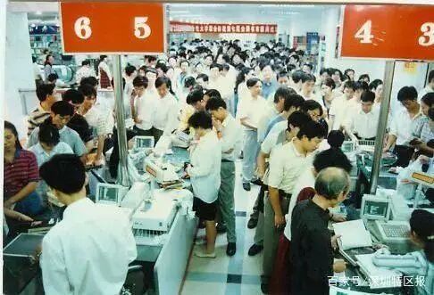 ▲ 1996 年 11 月 8 日,第七届全国书市举办地——深圳书城正式开业。因前来购书者太多,书城只好挂起“请明天再来”的告示,但门外的读者依然不愿离去。