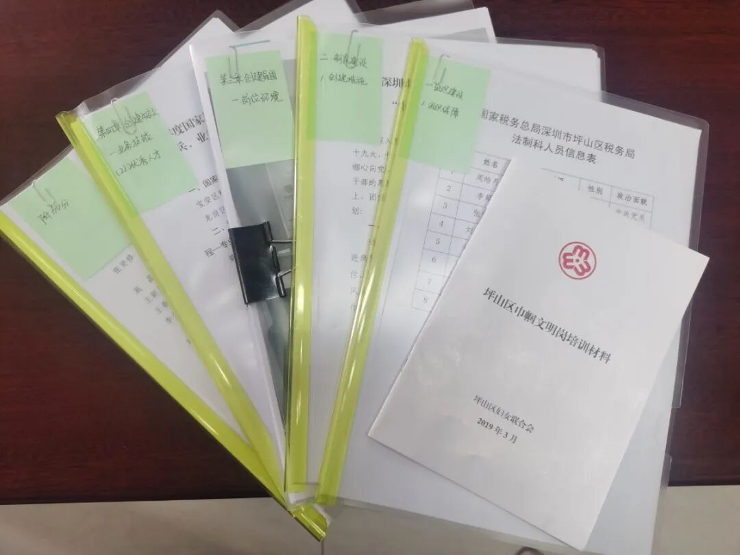 坪山区妇联检查小组于2020年10月22日至11月2日期间到候选单位进行现场检查,严格按照《深圳市“巾帼文明岗”评分标准》核实台帐,从组织建设、制度建设、创建氛围、创建成效等方面入手,了解各单位创岗亮点,特色工作,并一一检查创建资料、现场环境、现场公示内容等。