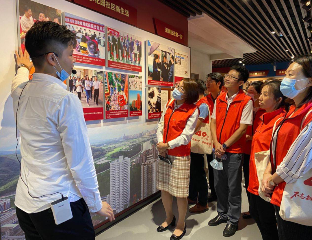 当日,罗湖区发改局全体党员集体穿上红色马甲,胸前佩戴党员徽章,前往罗湖区渔民村参观学习,跟随着讲解员先后参观了村口公园、文化长廊、村史馆、文化广场、党群服务中心。