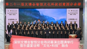 01:07深圳文博会智恒分会场闭幕演出圆满举行 音乐盛宴诠释“文化+科技”融合 中摄在线(记者 黄建华)5月28日下午,第二十一届文博会智恒文化科技创意园分会场闭幕式暨文艺演出圆满收官。活动由智恒园区主办,湾区艺术家联盟等机构联合承办,集结周春虎、卢丽平、胡丹等艺术家及采桑子合唱团、行者融合乐团、GAP TRIO三重奏等团体,呈现传统与科技交融的艺术盛宴。 智恒精神主题奏响 周春虎指挥采桑子合唱团献唱园区主题曲《智恒之光》(曜芯文化黄文广原创),以"创新、协作、突破"歌词传递园区内核;《忆秦娥·娄山关》《龙的传人》致敬红色精神与改革开放情怀。 多元艺术创新表达 胡丹小提琴独奏《春天的故事》演绎特区记忆;云雀组合民谣三重唱《清晨,我们踏上小道》赋予经典新声;GAP TRIO以电子跨界改编《阿里山的月光》等民乐曲目,展现深圳文化包容性;行者融合乐团在《梵净山歌》中营造数字山野意境;《山海行》直观体现智恒"文化科技融合"理念。 分会场成果延伸 作为文博会科技文化融合标杆,智恒园区通过多场文化活动,集中展示数字创意、文化出海等领域成果。本次闭幕演出以艺术为媒介,强化"文化赋能产业,科技激活传统"的园区愿景。未来将持续搭建跨界平台,助力深圳建设人文湾区创新策源地。#读特小记者逛文博会#