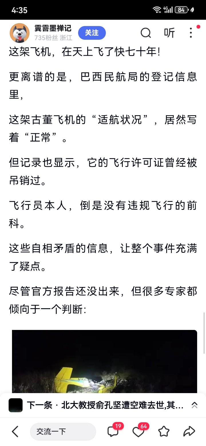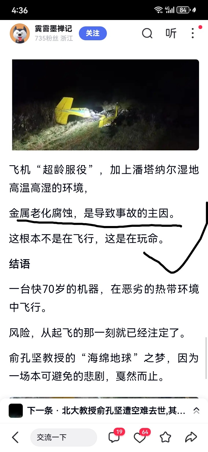 金属老化腐蚀,是导致事故的主因。塞斯纳(谐音晒死啦)名字含斯的飞机别坐!