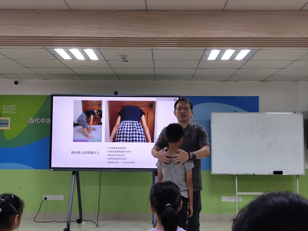 #南山志愿者读特小记者站#全民迎全运,体态筑未来-志愿小记者亲子脊椎健康普及”活动 10月12日上午,我参加了“全民迎全运,体态筑未来-志愿小记者亲子脊椎健康普及”活动,我们共同学习了脊椎健康知识,这次活动令我收获颇丰。 首先,参与人员依次进行自我介绍,一些人还分享了与脊椎健康相关的生活故事,用真实经历强调了守护脊椎的重要性,引发了在场人员的共鸣。 随后,陈老师针对日常脊椎放松误区进行讲解,指出工作学习劳累时扭脖子的行为会增加脊椎不稳定性,并现场示范了正确的放松方法。我们跟随练习后,都感觉到脖子和脊椎的紧绷感明显缓解。 接着,蔡老师教我们如何预防和测量脊椎侧弯以及脊椎侧弯的早期介入。告诉我们脊椎侧弯的重要性和对身体的影响,同时着重强调保持正确站姿、坐姿和睡姿的关键作用,为亲子家庭提供了实用的健康指导。 活动最后,老师们为现场的参与者进行脊椎检查,并结合个人情况给出了个性化健康建议。 这次活动让我了解到了脊椎健康的重要性,希望大家从纠正一个小姿势、坚持一次放松动作开始,一起关注脊椎健康,用健康的体态迎接每一天。