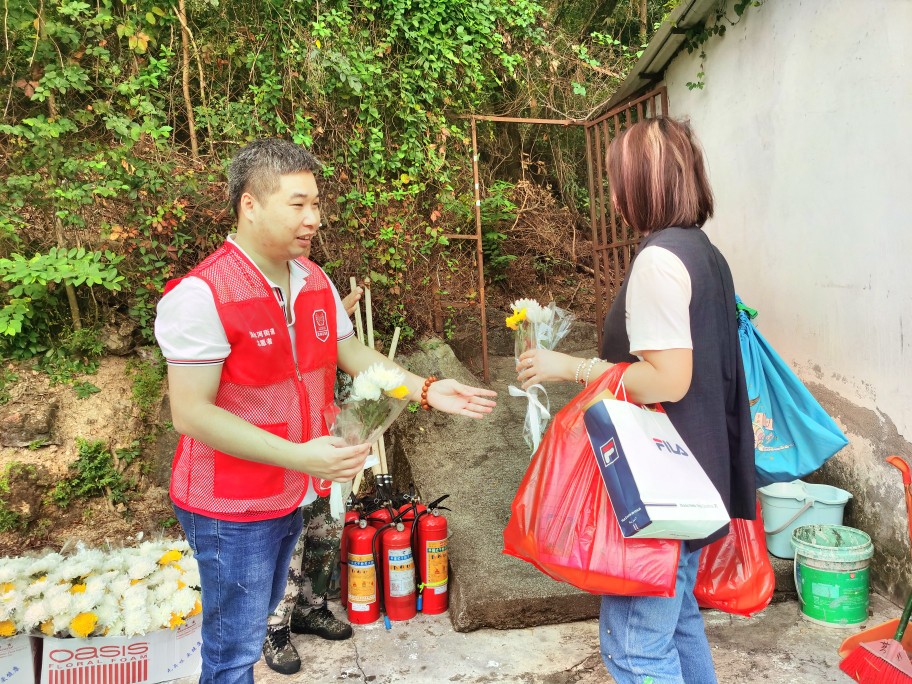 清水河U站助力红岗公园重阳祭祖 --文明服务暖人心,安全宣传护平安 又是一年重阳至,祭祖追思寄深情。罗湖区清水河U站携手清水河社区党群服务中心,在清新苑登山口与红岗幼儿园登山口开展重阳祭祖志愿服务活动,通过免费派发菊花、宣传消防安全知识等举措,为市民营造文明、安全的祭祖环境,让传统节日更具温度与保障。 活动现场,志愿者们热情地为前来祭祖的市民递上一朵朵素雅的菊花。“用鲜花祭祖,既环保又能表达对先辈的敬意,这种方式很有意义。”市民王女士接过菊花时感慨道。一箱箱“Oasis”品牌的菊花整齐摆放,在绿意盎然的红岗公园中显得格外清新,志愿者们的耐心讲解也让更多市民了解到文明祭祖的价值,纷纷选择以鲜花寄哀思,让祭祖更具时代文明气息。 消防安全是此次活动的另一重点。面对重阳祭祖期间可能存在的火灾隐患,志愿者们通过展示《深圳市人民政府关于森林防火禁火的通告》宣传牌,向市民详细讲解森林防火规定与安全祭祖注意事项。“祭祖时不能在山林附近随意用火,这些安全知识关乎大家的生命财产安全,一定要牢记。”志愿者的细致宣讲,让市民们对安全祭祖的重要性有了更深刻的认识。 此次活动,清水河U站将传统孝道文化与现代文明服务、安全保障相结合,不仅为市民提供了贴心的志愿服务,更在潜移默化中传递了文明祭祖、安全过节的理念。未来,清水河U站将持续关注社区需求,开展更多形式多样的志愿服务活动,为构建文明和谐社区贡献力量。 供稿:罗湖区清水河U站 向红梅