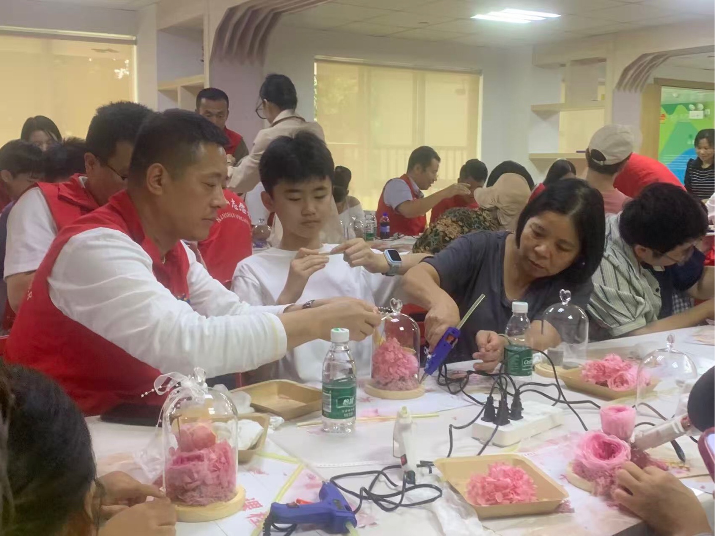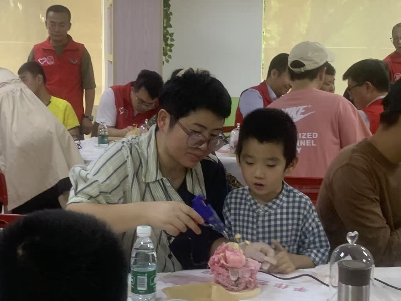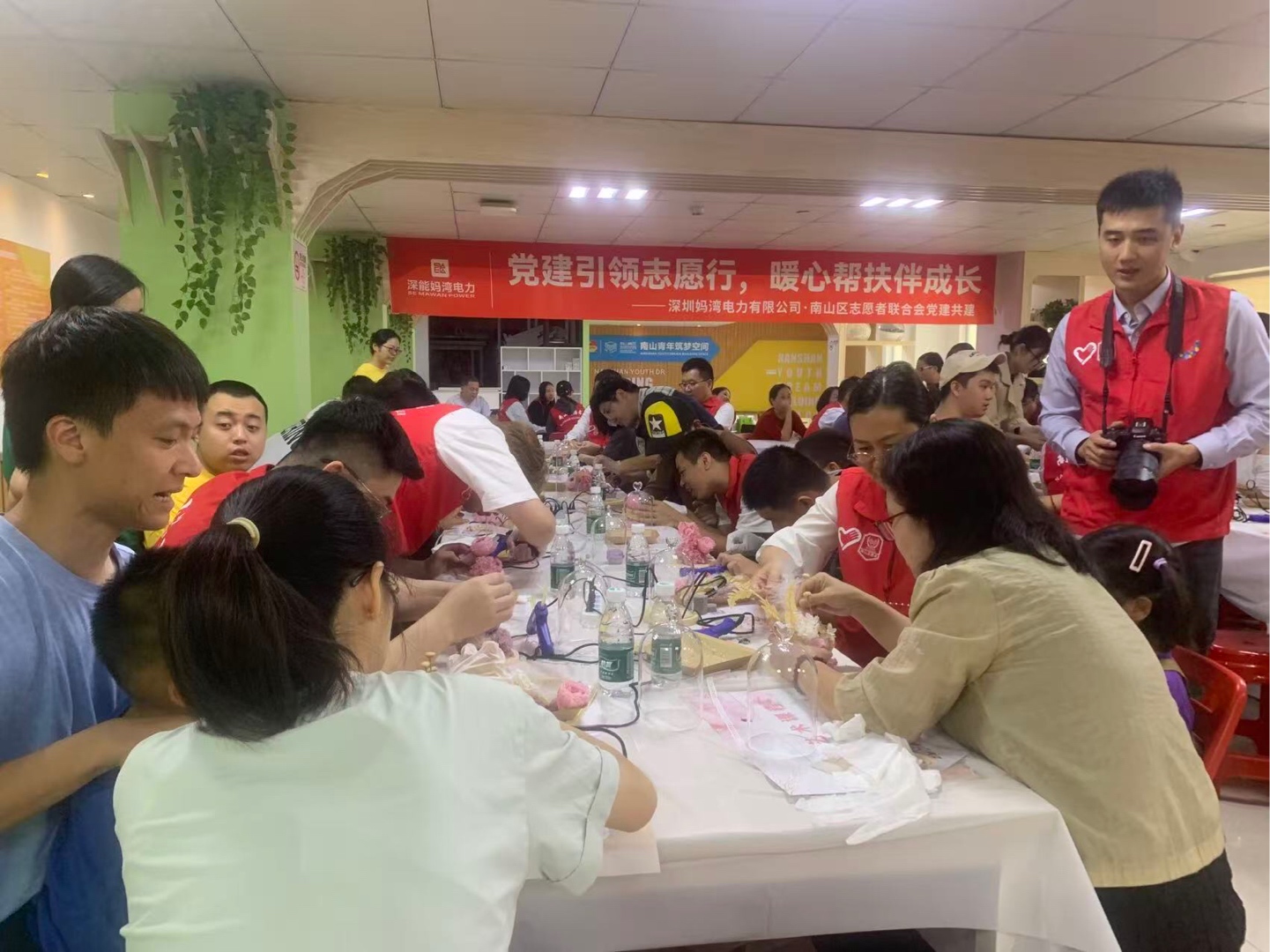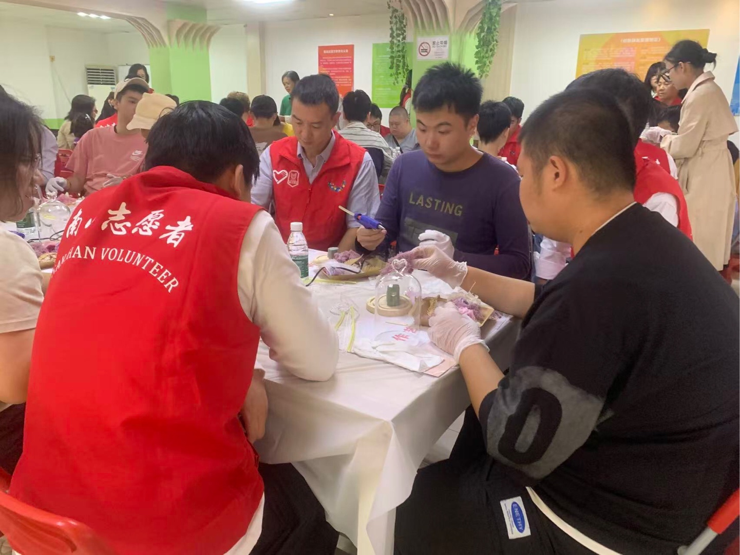 #南山志愿者读特小记者站#手工筑梦,温暖相伴 在11月2日我参加了助残活动——手工筑梦温暖相伴。这次活动,让我感触很深。 场地内非常热闹,几个志愿者围着两三个陪护对象。有的志愿者与陪护对象边聊天边辅助他制作,有的志愿者虽然沉默不语但手上速度依旧不减。“用这个胶水轻轻点在这朵花上,就大功告成啦!”有一家人很少参与集体的活动,在这一次手工制作也在志愿者的鼓励下,他们举起自己做好的成品,露出了灿烂的笑容!原本略显羞涩的陪护对象,逐渐放开身心,主动与身边人交流心得,闲聊家常,经过一个多小时的创作一件件精致的手工作品,相继带隐身,每一件都承载着大家的期盼。 这次活动以手工制作为桥梁,既帮助陪护对象锻炼了动手能力,丰富了精神世界,也让志愿者与陪护对象产生了感情,让志愿者们体会到责任与担当。