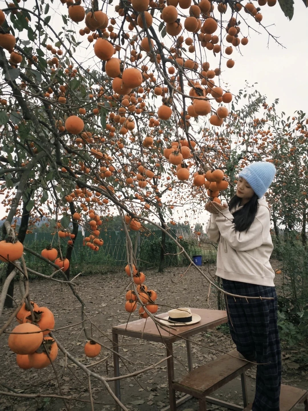 #读特小记者#家乡的柿子熟了,采摘柿子的美女与累累果实的柿子构成了一幅美丽的图景。