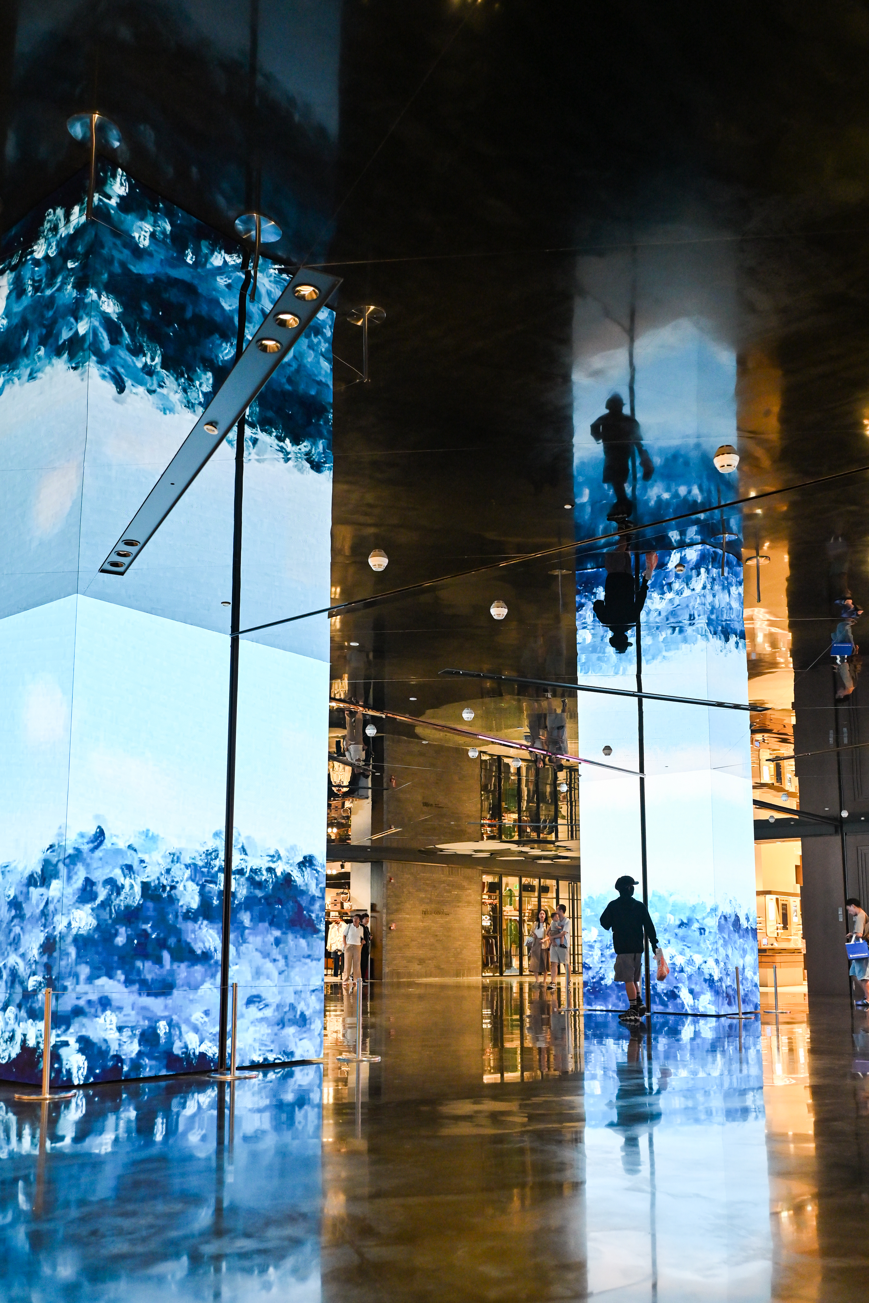深圳湾万象城二期,刚开业就迅速成为了深圳新晋网红商场,里面商品种类丰富,而且呈现出鲜明的“多巴胺” 特色,不少店铺的色调鲜亮活泼,逛上一整天都不腻。想出片轻而易举,特别推荐D区B1层大堂电子屏,屏幕上涌动着油画质地的海浪,再倒映在镜面天花板上,每每路过,都会觉得自己的身影坠入了虚实交织的“盗梦空间”~