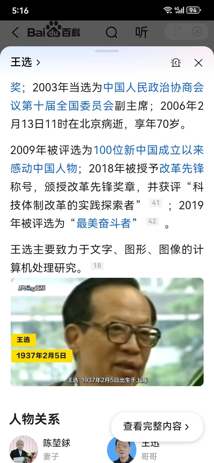 两位亲兄弟:王选(享年70岁,中国工程院院士)与王迅(享年91岁,中国科学院院士)