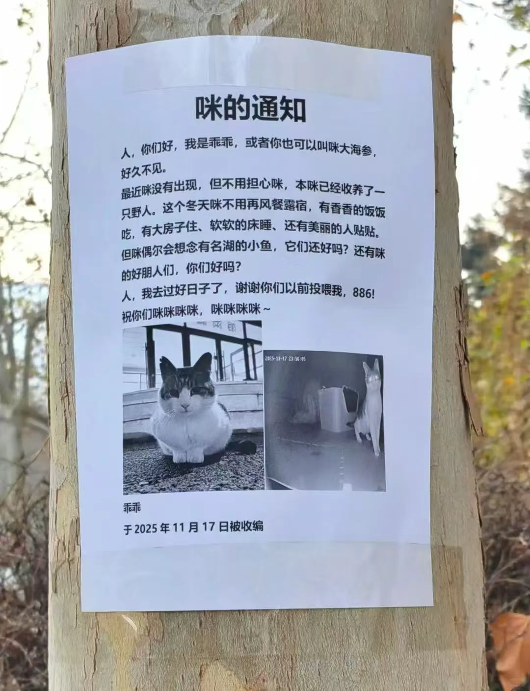 最近,一封“咪的通知”在全网刷屏,“人,咪有家啦!”没有华丽辞藻,却让无数深圳铲屎官眼眶一热。如果你家毛孩子会说话,TA会对你说什么?是催罐罐的“最后通牒”,还是下班回家时的“热烈欢迎”? 💬来评论接龙:“人,______!”写下你认为TA最想对你说的话,优质评论将获得【深圳盒子】文创礼盒! (图源网络)