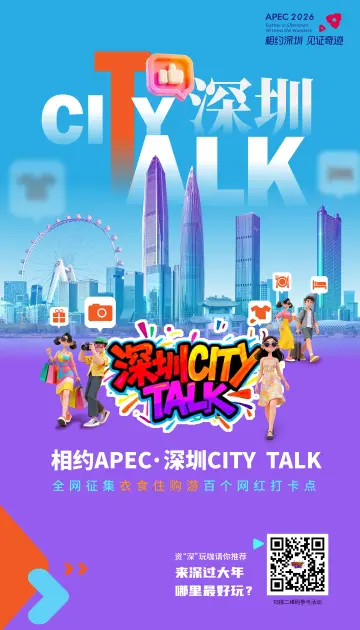 今年,深圳将迎来APEC盛会,我们想邀请您一起干件大事:成为深圳的“城市推荐官”,向全球游客安利这座我们深深热爱的城! 全网征集2月-10月期间,征集推荐活动将分为“衣、食、住、购、游”五大主题单元,每个主题单元征集20个候选打卡点,最终集齐100个打卡点; 评选环节经过网友票选和专业人士评选,每个主题选出10个最热门打卡点,绘制成一张 “APEC中国年·深圳打卡地图”。 ※如果您推荐的好物和宝藏地入围了“候选打卡点”,还有机会获得“深圳CITY TALK”神秘礼盒! 【本期话题】#相约APEC深圳CITYTALK# 【活动时间】2月-10月 【参与方式】带话题发布相关文字、照片或视频内容即可参加活动