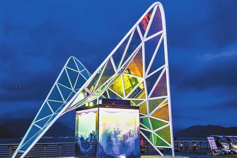 面朝大海,春暖花开。恋人之翼公厕位于大鹏新区较场尾河堤,以大鹏鸟为原型,一对美翅随时间、角度、气候变化呈现不同炫彩。三面全景雾化玻璃与海天美景融为一体。透明时,绝美碧海蓝天尽收眼底;雾化后,独享清新宁静天地。