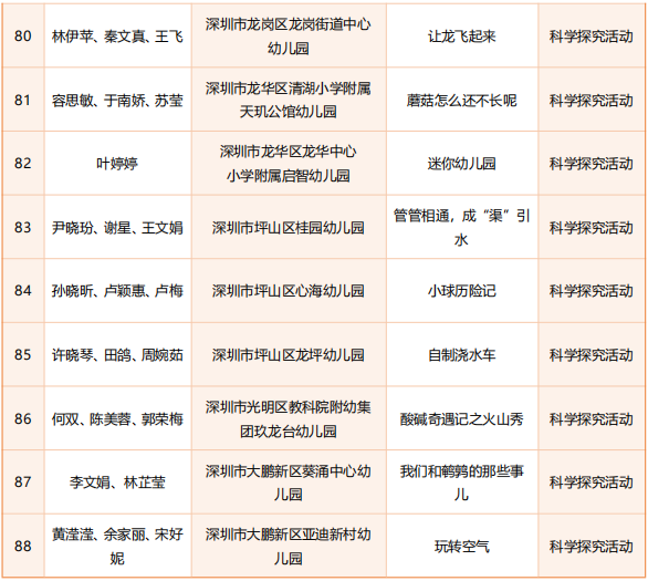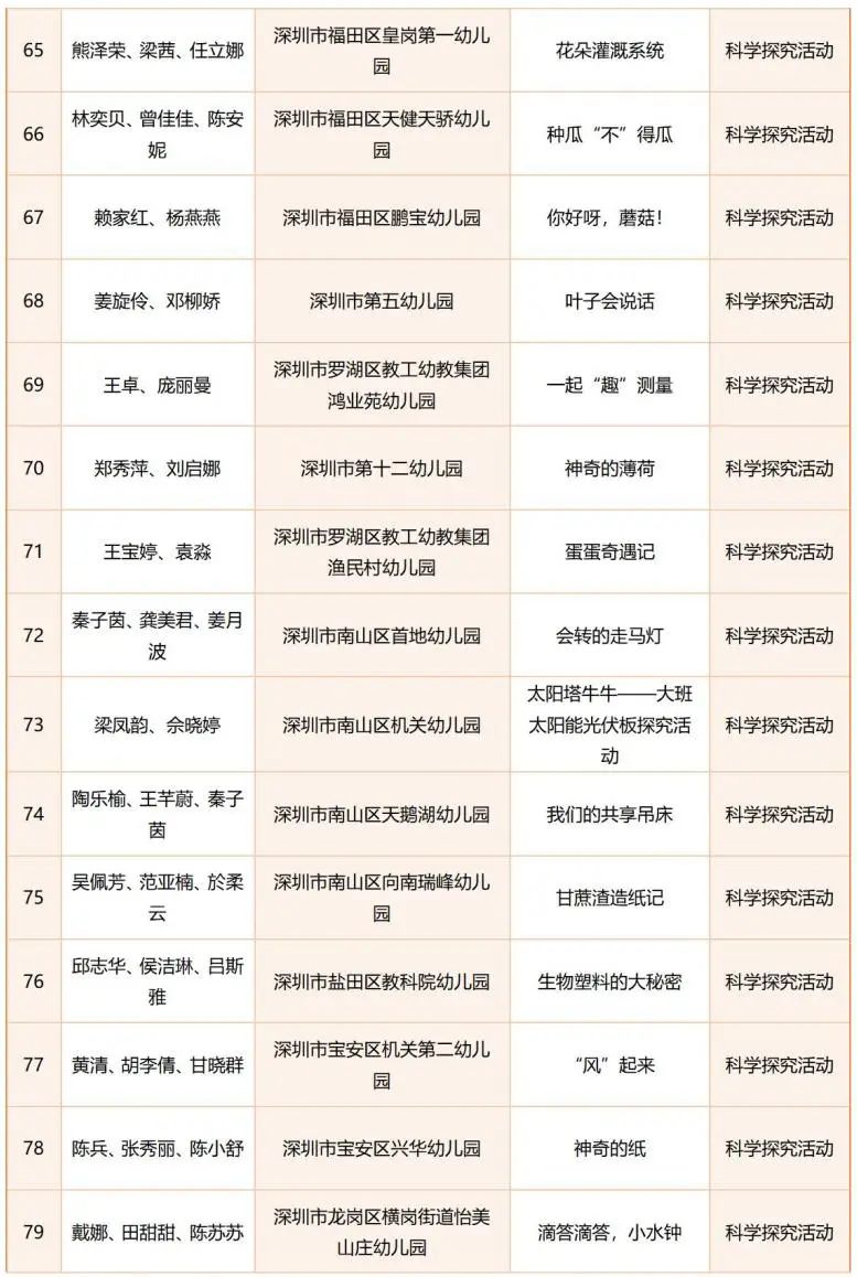 深圳市教育局于2024年11月面向全市幼儿园开展幼儿园课程资源库二期建设工作案例评审活动,经过评委评议,遴选出拟上线深圳教育云平台幼儿园课程资源库的优秀案例88个。公示时间为2025年5月22日至2025年5月26日,共5天。