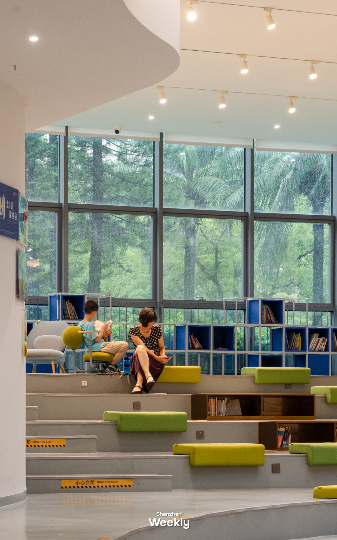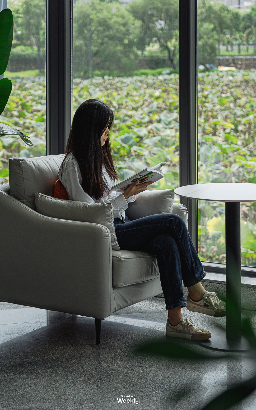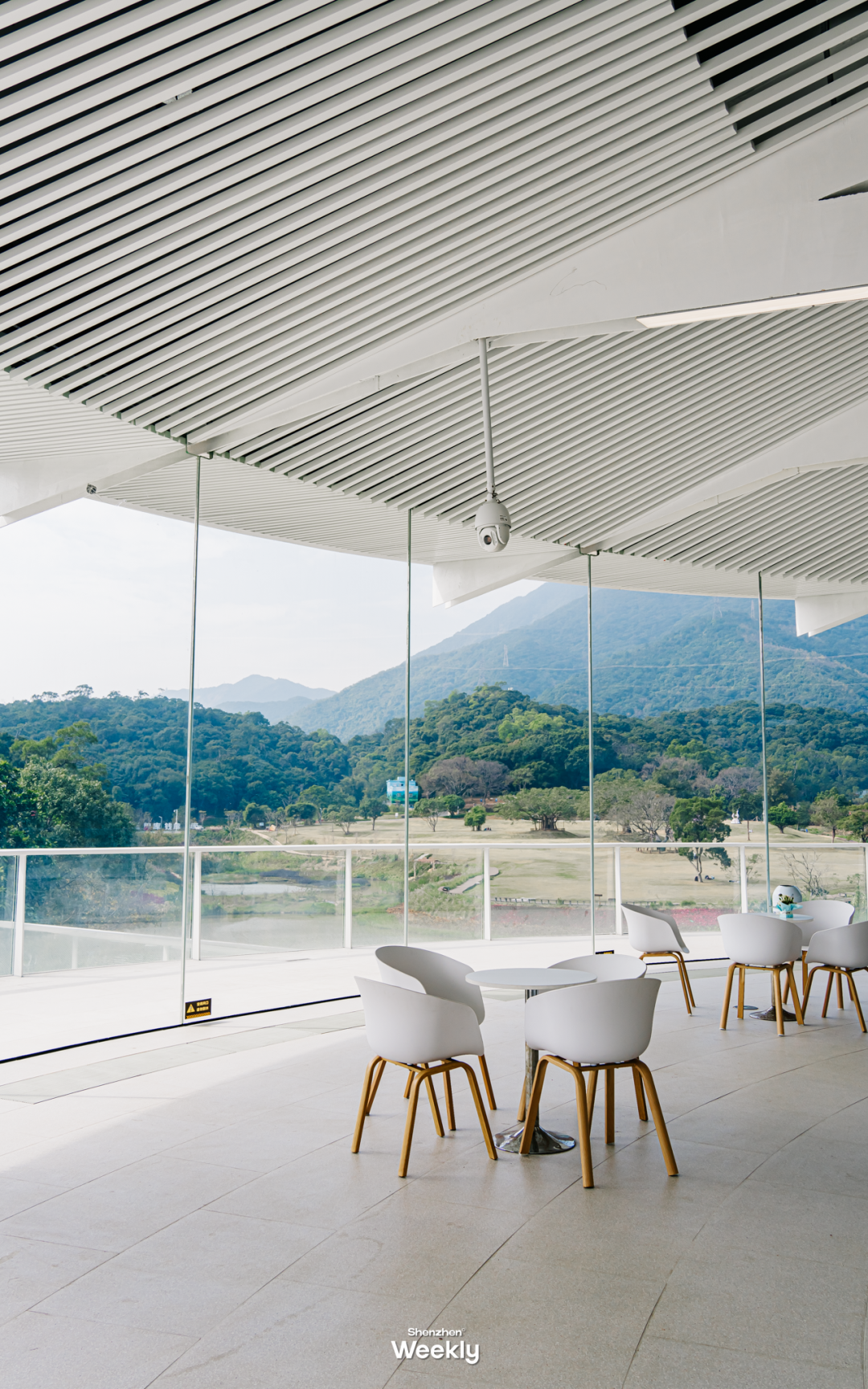 在深圳这座充满活力与创新的都市森林中,隐藏着一个个治愈的精神角落,它们以一种静谧而温柔的姿态,成为深圳公园流量的新密码,这些角落,就是深圳公园里独具特色的书吧与图书馆。与城市的喧嚣形成鲜明对比,这些书吧大多依偎在郁郁葱葱的森林中,或是藏在花草繁茂的角落里,又或是与海相伴,将大自然与人文精神完美融合。它们不仅有丰富的藏书、舒适的环境,还免费向公众开放,是绝佳的放空好去处。云端观山海书吧,位于盐田半山公园带核心区的云海公园,地处海拔380米的半山平台。书吧设立在主体建筑三层,有着360°的宽阔视野,可见天地,也见山海,一览盐田港全貌,被称作是“深圳海拔最高的书吧”书吧整体设计也很前卫,室内采用全景落地窗设计,曲线造型的柔美和金属质感的清冷刚毅形成鲜明的对比,颇具未来科技感。在云端读书,颇有一番韵味。地址:云海公园·盐田区云海广场西北侧