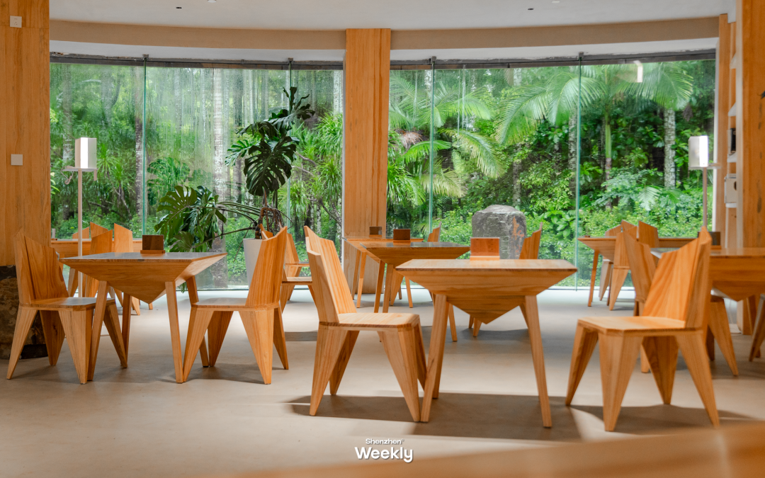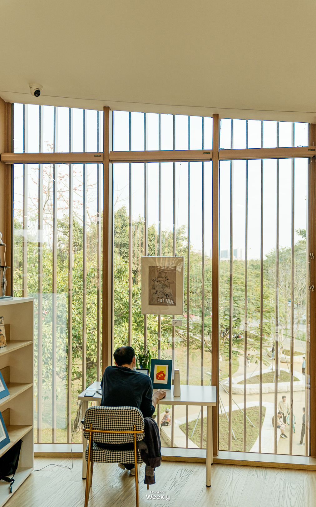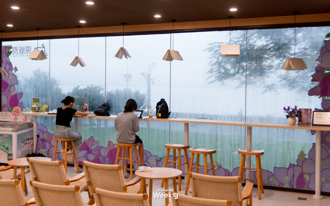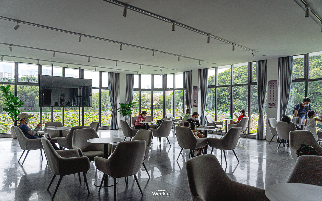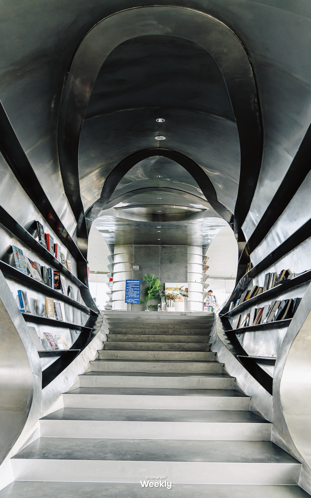 在深圳这座充满活力与创新的都市森林中,隐藏着一个个治愈的精神角落,它们以一种静谧而温柔的姿态,成为深圳公园流量的新密码,这些角落,就是深圳公园里独具特色的书吧与图书馆。与城市的喧嚣形成鲜明对比,这些书吧大多依偎在郁郁葱葱的森林中,或是藏在花草繁茂的角落里,又或是与海相伴,将大自然与人文精神完美融合。它们不仅有丰富的藏书、舒适的环境,还免费向公众开放,是绝佳的放空好去处。云端观山海书吧,位于盐田半山公园带核心区的云海公园,地处海拔380米的半山平台。书吧设立在主体建筑三层,有着360°的宽阔视野,可见天地,也见山海,一览盐田港全貌,被称作是“深圳海拔最高的书吧”书吧整体设计也很前卫,室内采用全景落地窗设计,曲线造型的柔美和金属质感的清冷刚毅形成鲜明的对比,颇具未来科技感。在云端读书,颇有一番韵味。地址:云海公园·盐田区云海广场西北侧