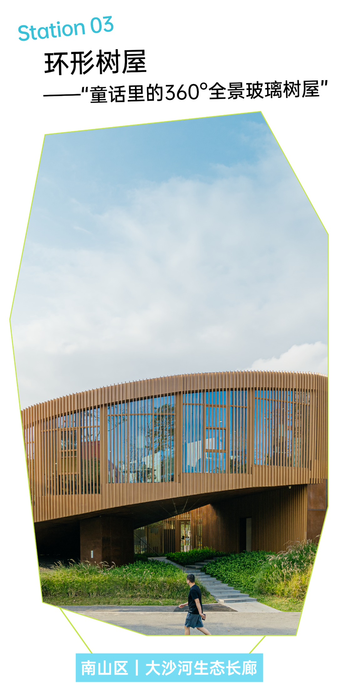 于南山大沙河畔,螺旋而上的环形树屋,到现在依旧是一个非常宝藏的小众打卡地。环形树屋依靠大沙河的自然优势,以“海螺”为形象载体而设计,四周绿树成荫,在树屋的中间也种满了绿植,令其完美地融入自然密林之中。螺旋阶梯盘旋而上,两层的高度,几乎每个阶梯都会设有阅读区,无论是小朋友还是大人都喜欢坐在阶梯上阅读、办公。二楼还有一个超大的露台,可以饱览大沙河畔一览无遗的景色。茶、咖啡、点心都不贵,点上一份,休闲时光即可开始。