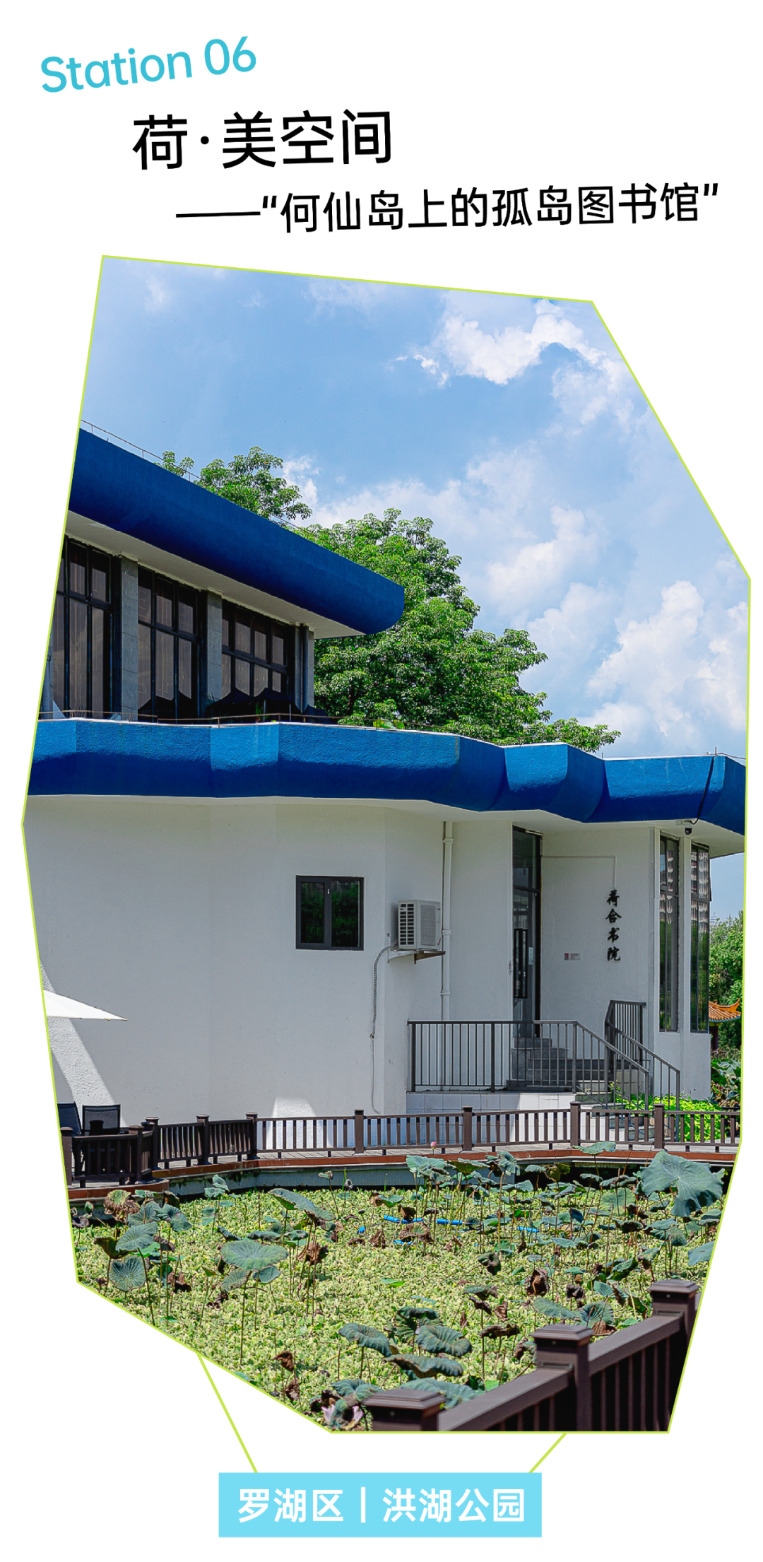 “荷·美空间”位于洪湖公园的荷仙岛上,独栋白房子被荷塘包围,巨型落地窗把美景揽进怀里,还有供人休闲放松的万册图书和四重艺术空间,书馆之外,更是有树林、廊桥、池塘可尽情释放自我。建于荷仙岛上的图书馆,把与“荷”相关的元素装点在每一个角落,这里有270度环绕落地窗,抬眼望去,即是“接天莲叶无穷碧”的唯美画卷,图书馆有3面落地大书墙,藏书量超过2万件,可以满足不同人群的阅读需求。地址:洪湖公园-罗湖区洪湖公园荷仙岛
