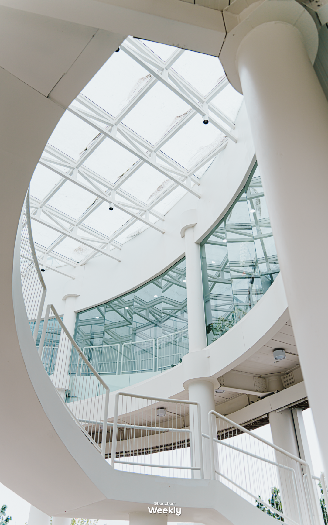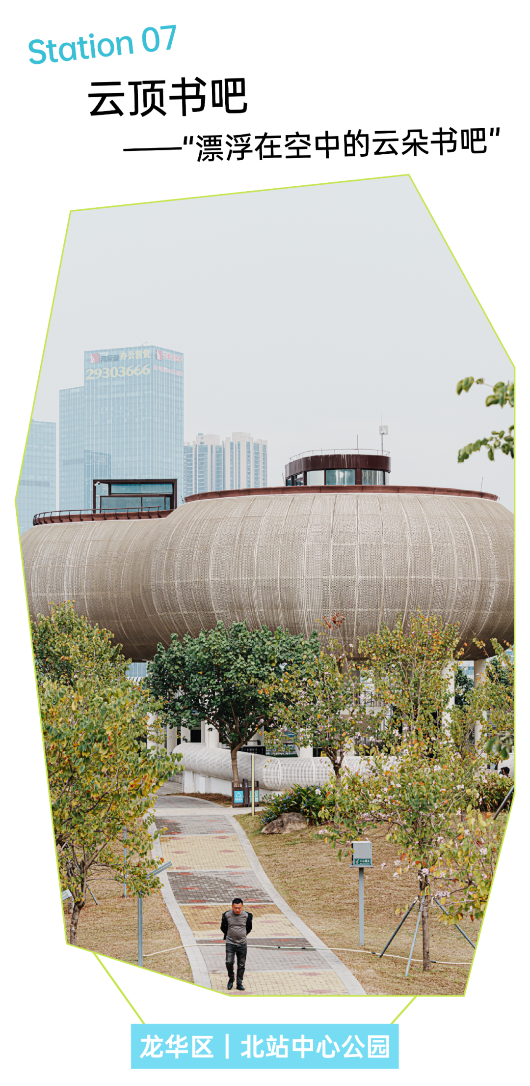 在北站中心公园,远远看,有一朵漂浮在空中的“巨云”,它就是「云顶书吧」。书吧是以“云朵”为形状打造的一座具备图书馆功能的建筑,有着“蓝天白云,悠闲洽意”的意境理念。室内以白色色调为主,没有过多复杂的陈设,简洁干净,呈现出一目了然的高级感。这里提供免费借阅的书籍共6000本,各类书籍应有尽有;此外,这里还可以直接通往空中连廊,在高处俯瞰深圳北站的风景~地址:龙华区北站中心公园(深圳北站西广场对面)