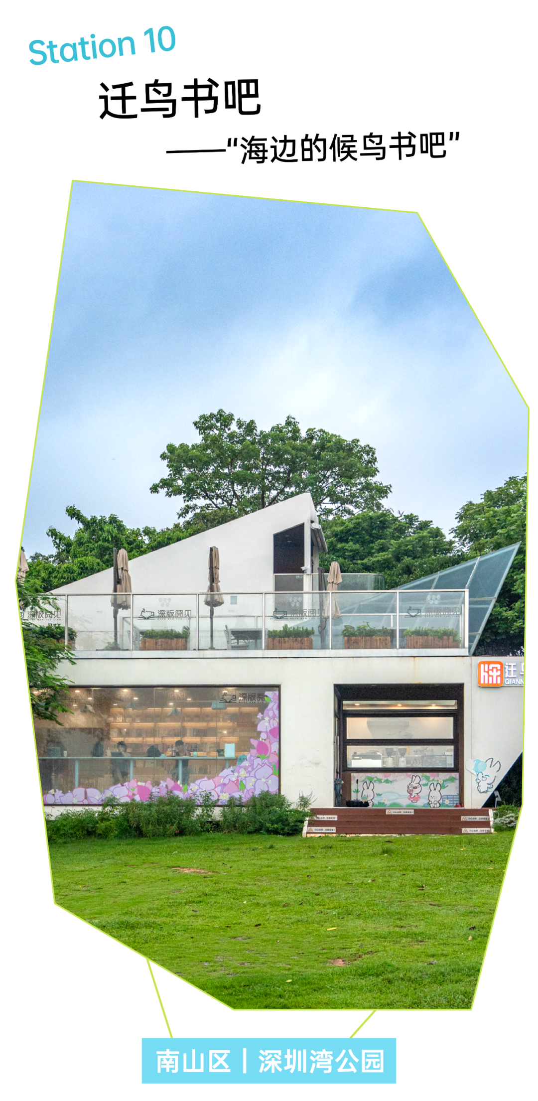 深圳的可以看海赏鸟的书吧又新增了一个,它就是位于深圳湾公园中湾阅海广场内的「迁鸟书吧」,也是深圳首个可移动性模块化公园书吧,于去年2月份正式开放。在这里可以畅游书海,迁鸟相伴。书吧共有三层,室内总面积才120平方米,以白色为基调,木色点缀其中,与周围的绿树、蓝天、大海相得益彰;从公共阅读区、到私密阅读区再到顶层露台,每个空间都能够充分的与自然融合。书吧重点呈现鸟类、自然科普类图书,同时也涵盖其他种类的图书,此外这里也提供咖啡、茶饮和甜品。地址:南山区沙河街道深圳湾公园中湾阅海广场