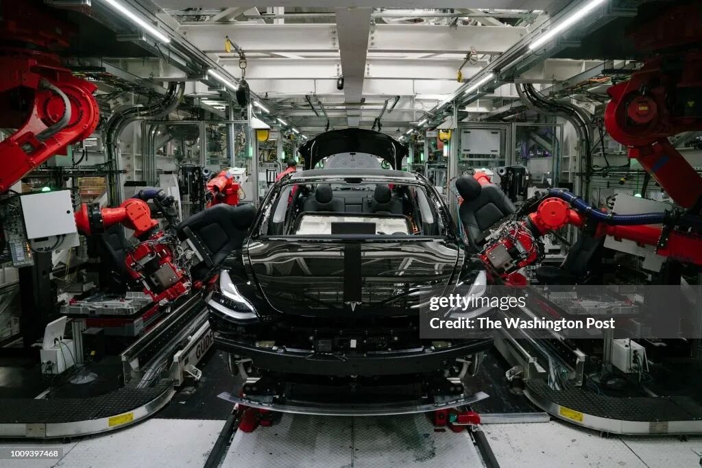特斯拉工厂自动化机器人装配座椅(图源:Getty Images)