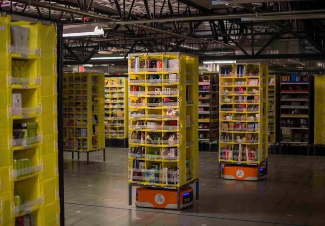 亚马逊机器人在圣诞节高峰前在亚马逊运营中心运输货物(图源:路透社)