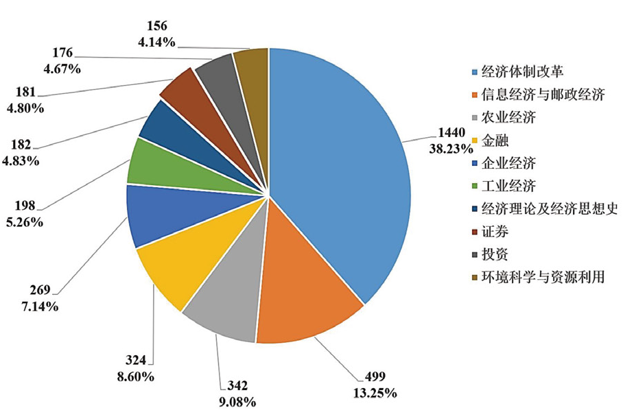 在学科分布中,“经济体制改革”占比38.23%,在该学科领域具有代表性的论文是胡洪彬撰写的《习近平总书记关于新质生产力重要论述的理论逻辑与实践进路》,文章认为,习近平总书记关于新质生产力的重要论述深刻揭示并回答了新时代如何进一步解放和发展生产力的根本命题。对此,必须坚持和加强党对经济工作的全面领导,推进中国科技创新力,建设现代化产业体系。“信息经济与邮政经济”占比13.25%,在该学科领域具有代表性的论文是米加宁等人撰写的《算力驱动的新质生产力:本质特征、基础逻辑与国家治理现代化》,文章认为,算力驱动的新质生产力正深刻地改变着政府治理的形态、对象、主体和生态。由此,必须坚持“有为政府”和“有效市场”、基础研究与应用场景的原则,优化资源配置,塑造算力发展新优势。“农业经济”占比9.08%,在该学科领域具有代表性的论文是罗建文等人撰写的《农业新质生产力:理论脉络、基本内核与提升路径》,文章认为,农业新质生产力基本内核是以农业数字化、智能化为主线,不断提高农业的劳动、知识、技术、管理、数据和资本等全要素生产率。以新质生产力促进农业高质量发展需实现从能源农业到数智农业的跨越性提升,从大食物观到大国土资源观的创新性配置以及从农民队伍到新型农业经营主体的系统性培育。三篇文章分别从不同角度论述了新质生产力的重要性与发展路径。总之,新质生产力研究涉及面广,多学科的交叉融合为新质生产力研究提供了理论突破与实践创新。