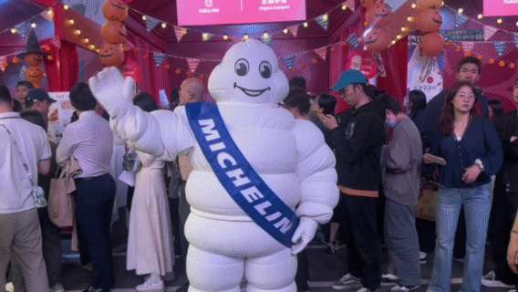 说起米其林,自然少不了其形象代表“必比登”的登场。活动现场还特别设置了“必比登巡游”环节,憨态可掬的轮胎人穿梭在人群中,与食客们欢乐互动、合影留念,成为了现场最受欢迎的流动打卡点。