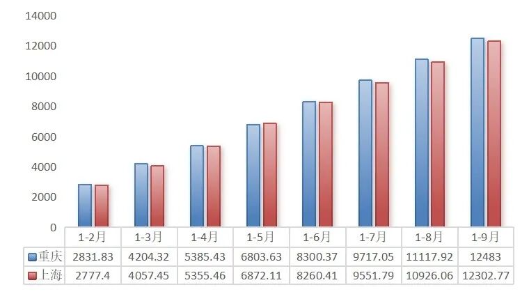 规模方面,上海前三季度GDP首破4万亿元。在经济总量层面,前三季度,上海、北京、深圳GDP分别为40721.17亿元、38415.9亿元和27896.44亿元,稳居全国城市前三名。上海2021年GDP首破4万亿元,在“十四五”收官之年仅用三个季度就达到了4万亿元,体现了背后的经济活力与潜能。北京前三季度GDP总量接近4万亿元,大概率在年底成为继上海之后的全国第二个5万亿城市。和去年同期一样,上海和北京依然是前三季度GDP“唯二”冲上3万亿元的城市,其他城市GDP总量也均超过万亿元。广州经济结构调整初显成效,GDP增速回升到4.1%,但仍显著低于其他重点城市,重庆全国第四城地位持续稳固。