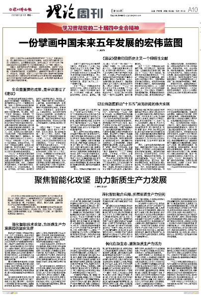 党的二十届四中全会是在我国即将胜利完成“十四五”主要目标任务,进入基本实现社会主义现代化夯实基础、全面发力的关键时期召开的一次重要会议。全会最重要的成果,是审议通过了《中共中央关于制定国民经济和社会发展第十五个五年规划的建议》(以下简称《建议》)。