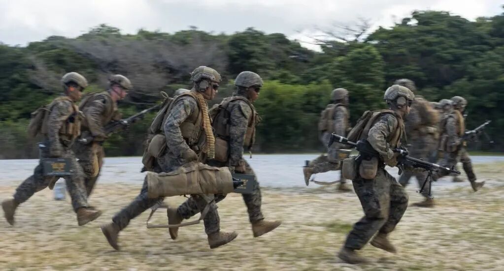 2025年9月,美日启动史上最大规模“坚决之龙”联合军演,图为美国海军陆战队士兵在日本冲绳汉森营进行机枪架设演练,为“坚决之龙25”演习做准备(图源:维基百科)