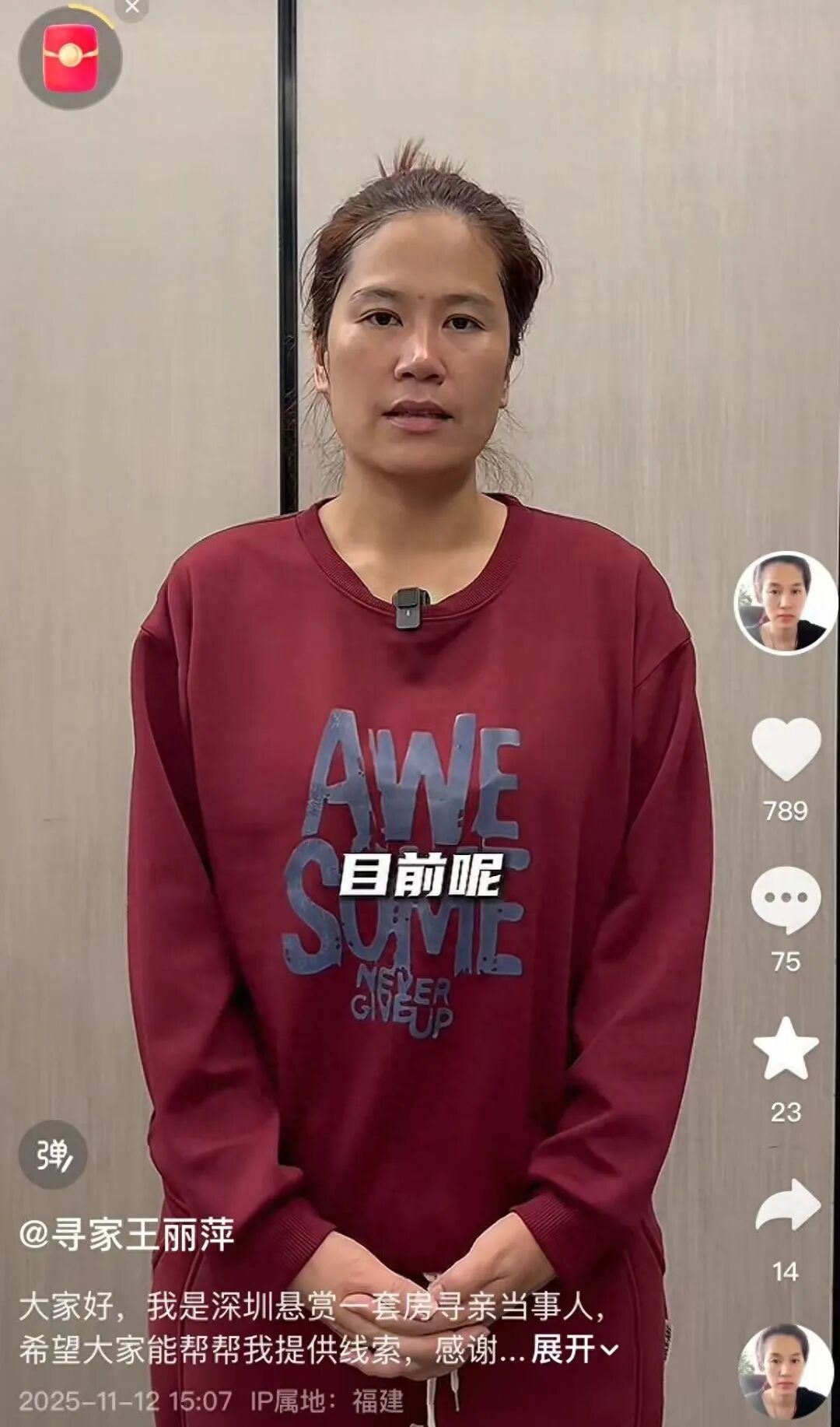 王丽萍在网络发声寻亲。图/受访者账号截图