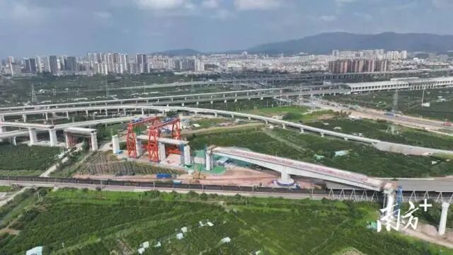 ▲深江铁路首座转体桥完成转体。图源:南方+