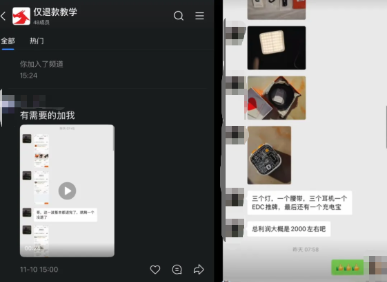 记者以学习者身份接触到一个教学该“技术”的“师傅”,对方表示支付288元学费即可传授“仅退款”窍门,并宣称一个账号约可成功退款30次。为证明效果,他还展示了学员“累计获利2000元”的成果。