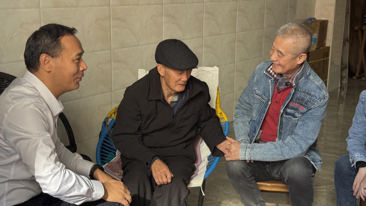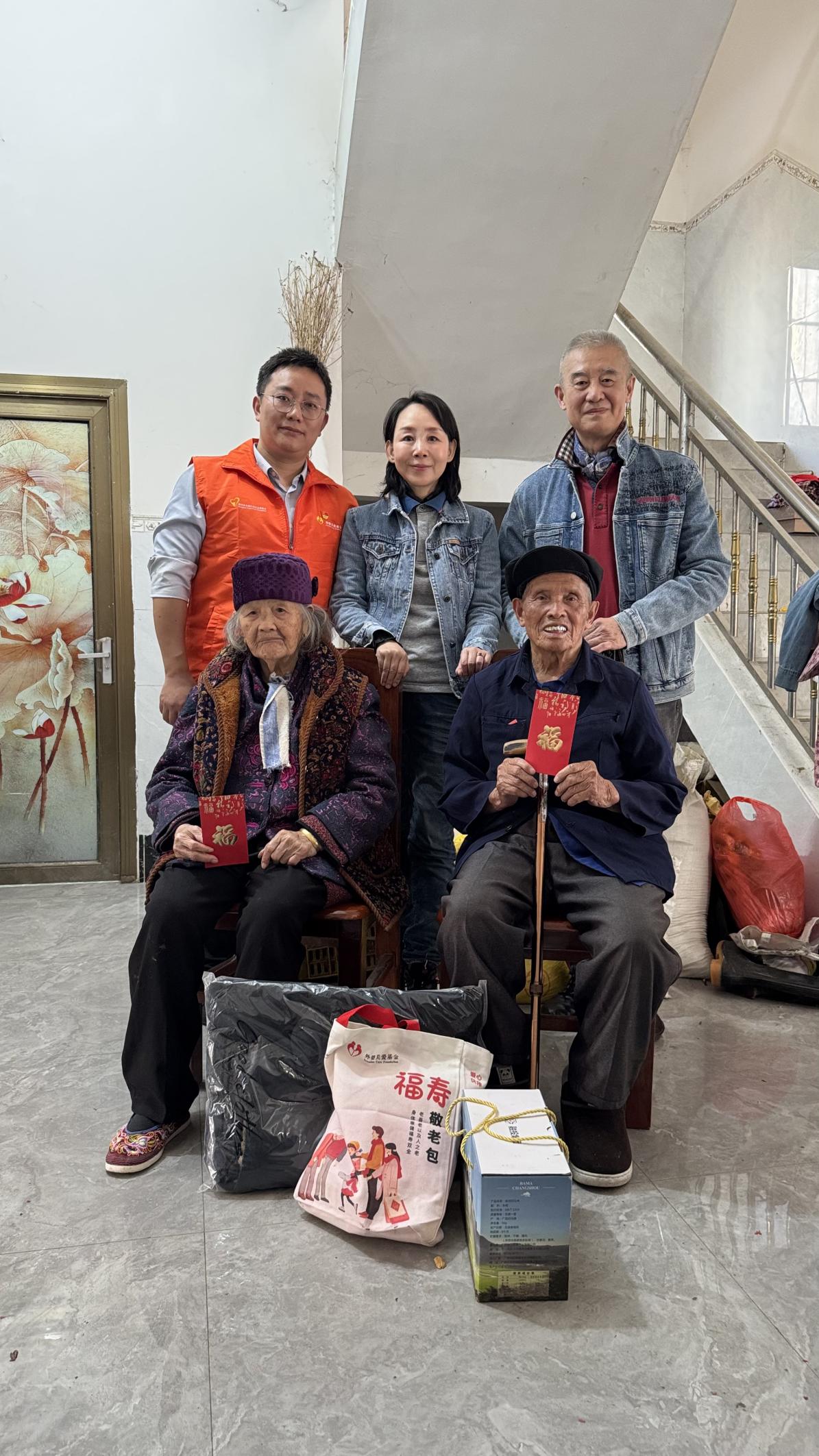 下午,在王锐副县长的陪同下,爱心团队见到了 113 岁的刘永必老寿星。老人躺在摇椅上,神态悠然,精神矍铄得让在场所有人都赞叹不已。家人笑着介绍:“老爷子生活能自理,每天上午下午都要去散步、和老伙计们聊天,作息特别规律。”简单的生活日常,藏着长寿的密码,更透着岁月的静好。