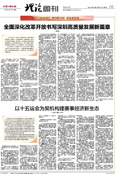 潮起珠江万象新。深圳要从政治、战略、全局的高度全面系统深入学习贯彻习近平总书记视察广东和出席第十五届全国运动会开幕式重要讲话重要指示精神,与党的二十届四中全会精神,与习近平总书记对广东、深圳系列重要讲话重要指示精神贯通起来,把习近平总书记、党中央的关怀厚爱转化为奋进新征程、建功新时代的强大力量,牢记嘱托、感恩奋进,真抓实干、埋头苦干,大力弘扬改革开放精神、特区精神,以全面深化改革开放推动高质量发展,不断增创新优势、实现新突破,奋力在推进中国式现代化建设中走在前列、勇当尖兵。