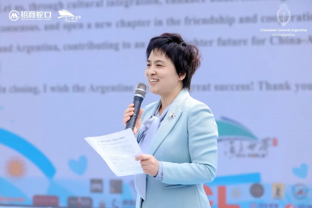 时美善在致辞中向深圳市、南山区、招商街道为本次活动提供的支持和服务保障表示感谢,介绍了本届文化节的主要内容和亮点,期待阿根廷文化节不仅能成为深圳市民的美好文化记忆,更将搭建起深化中阿友谊的桥梁。