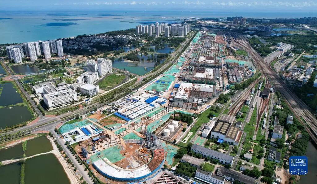 //海口新海港和南港“二线口岸”(货运)集中查验场所建设项目(新华社无人机照片)。