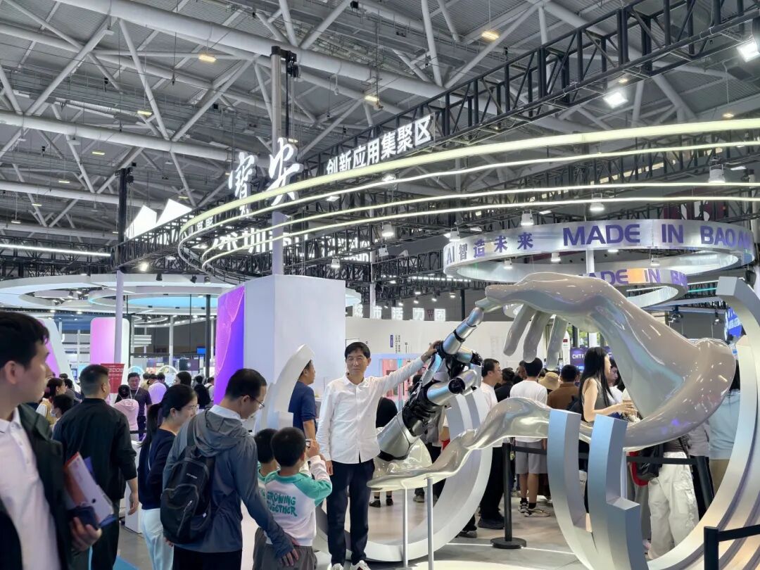 ▶智能制造板块,完整呈现包括SMT激光焊接等工序的整条生产线,大族锂电、华成工控等重点企业携核心产品亮相,尽显宝安制造硬实力。