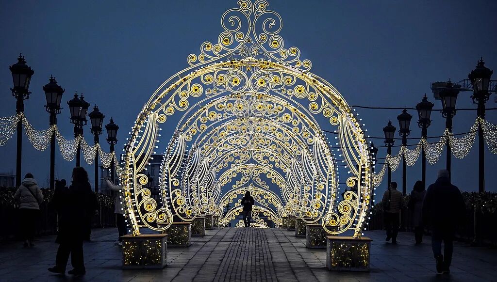 ▲当地时间2025年12月2日,俄罗斯莫斯科,人们走过市中心的圣诞节装饰,为新年和圣诞假期做准备。图源:CFP