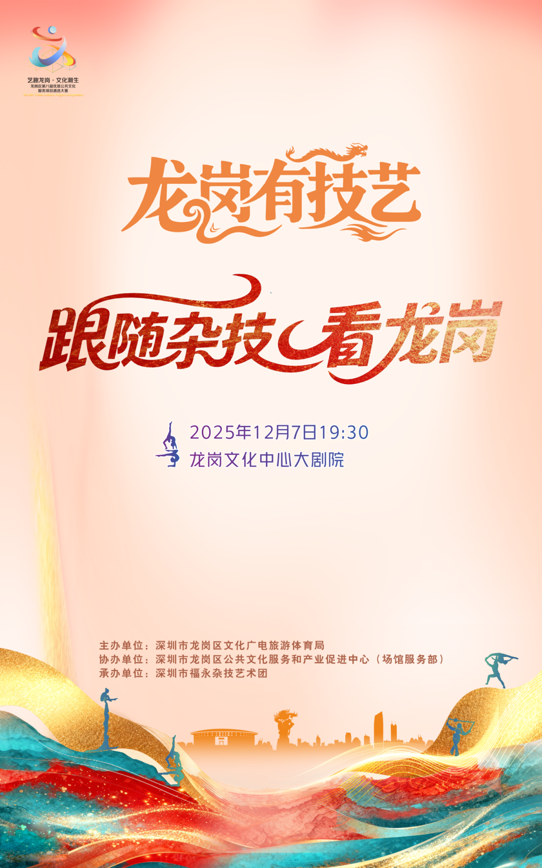 为了不断提升深圳龙岗公共文化服务品质,龙岗区文化广电旅游体育局携手深圳市福永杂技艺术团,推出“龙岗有技艺·跟随杂技看龙岗”系列活动,让更多市民在家门口就能欣赏到专业、精彩、多元的杂技艺术。