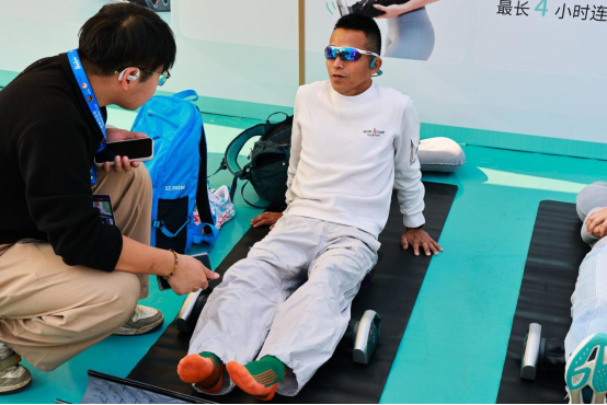 赛前,AI医疗机器人3分钟就能完成心率、血压等8项健康指标检测,为跑者筑牢安全防线;