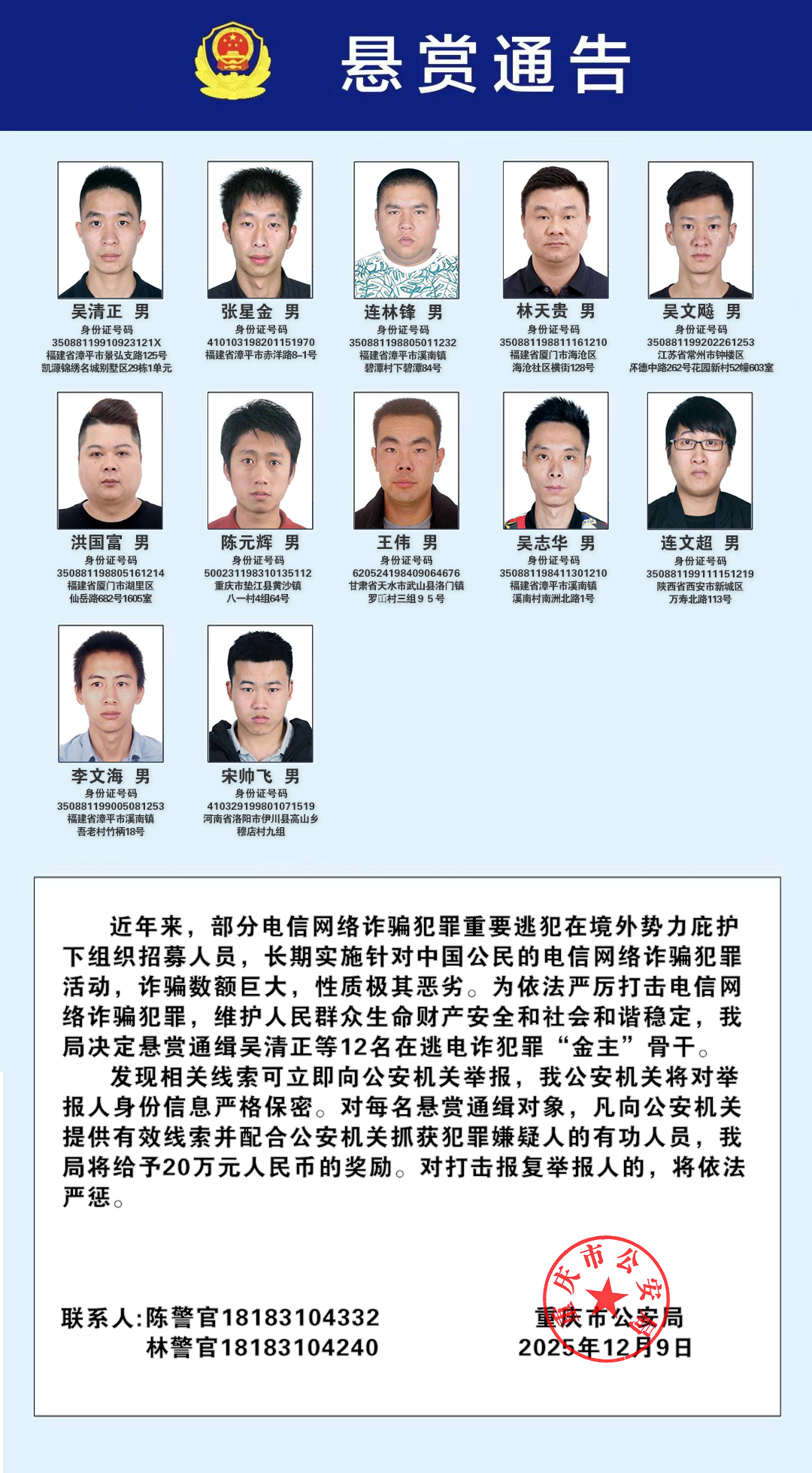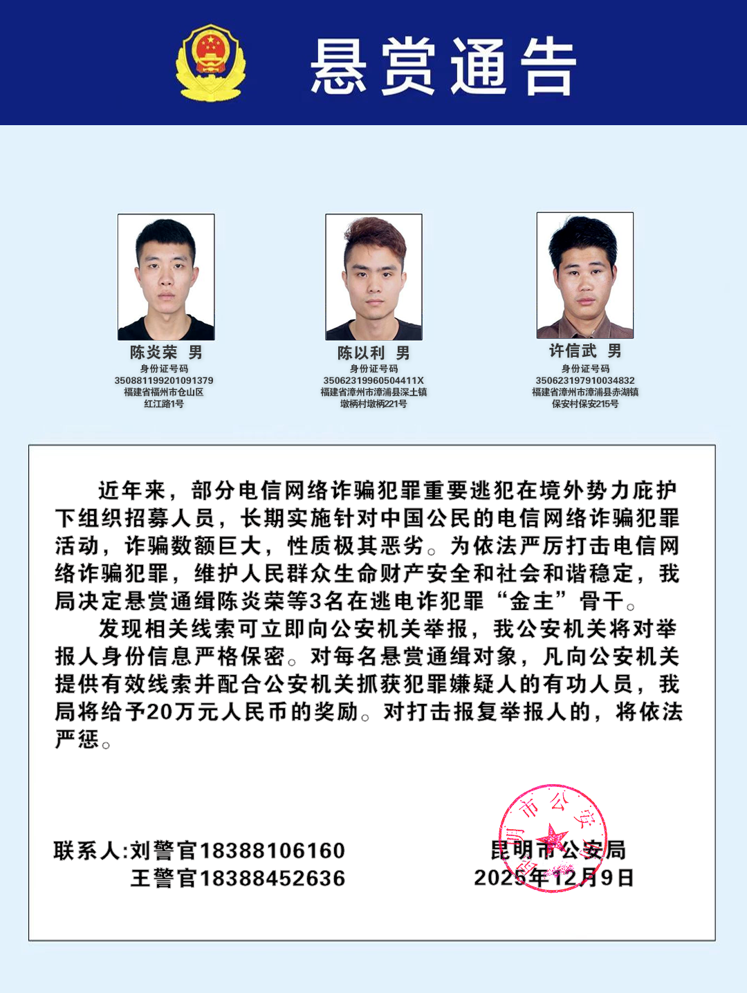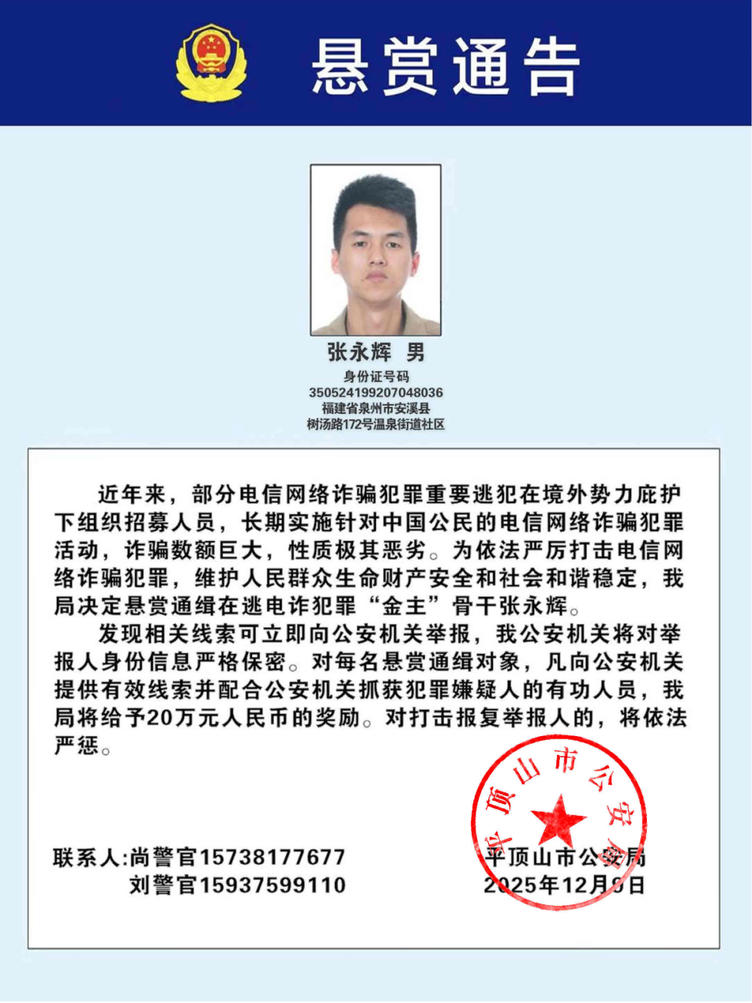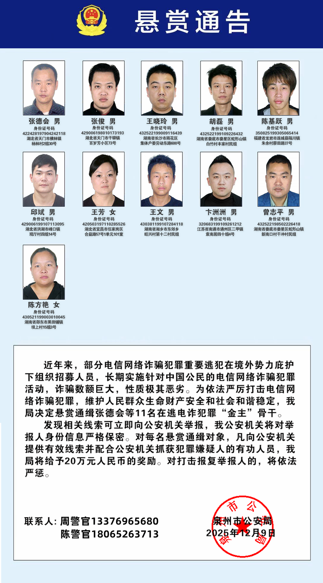 为依法严厉打击跨境电信网络诈骗犯罪,切实维护人民群众财产安全和合法权益,近日,公安部发布通缉令,公开通缉100名电信网络诈骗犯罪在逃金主和骨干,其中包括吴启平、吴清正、傅小滨、欧长华等缅北“四大家族”犯罪集团重要逃犯。