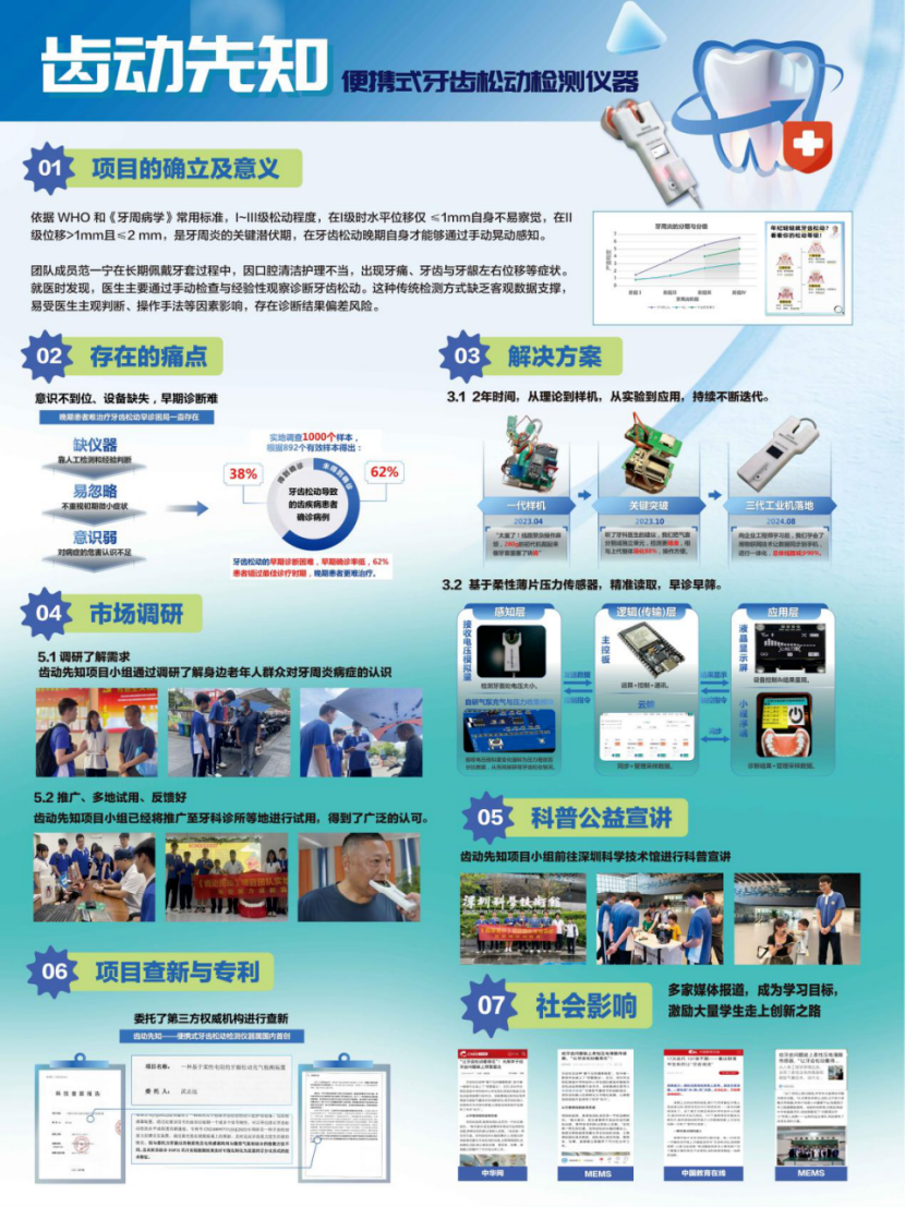 该设备集成微型压力传感与智能算法,能精准量化牙齿松动度,并通过轻量化终端与云端平台,助力专业诊断与家庭自主监测,为基层口腔医疗普惠化提供了创新方案。