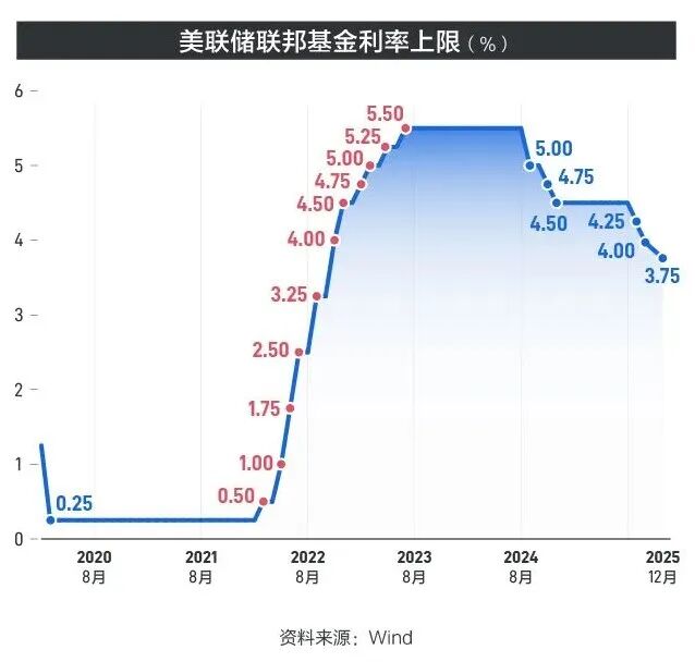 美国联邦储备委员会12月10日宣布,将联邦基金利率目标区间下调25个基点到3.5%至3.75%之间。这是美联储继9月17日、10月29日降息后年内的第三次降息,幅度均为25个基点。