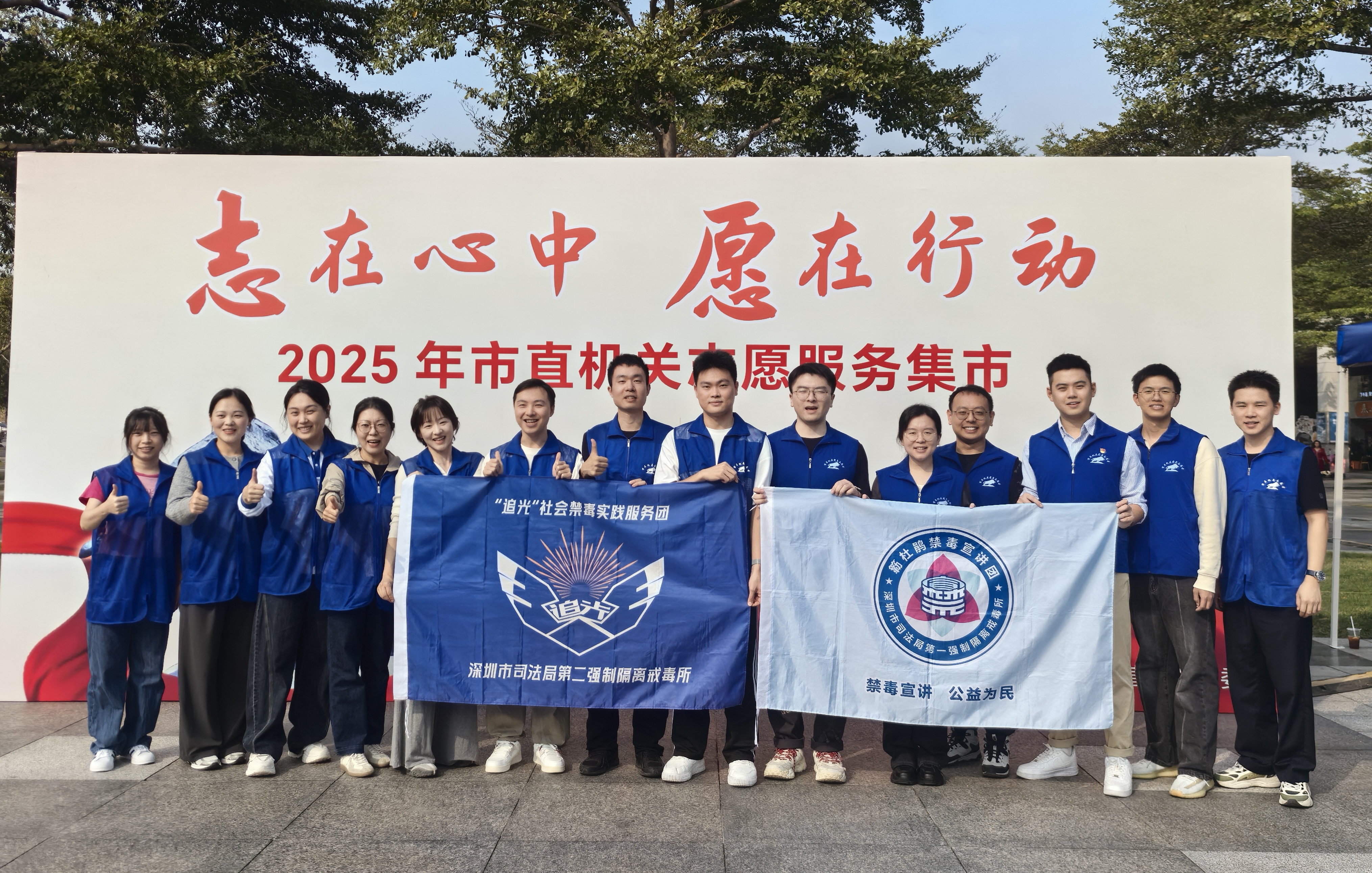 近日,深圳市司法局第一强制隔离戒毒所(以下简称“深圳一所”)、第二强制隔离戒毒所(以下简称“深圳二所”)联合组织青年民警志愿者,参与福田中心书城举办的2025年市直机关志愿服务集市活动。