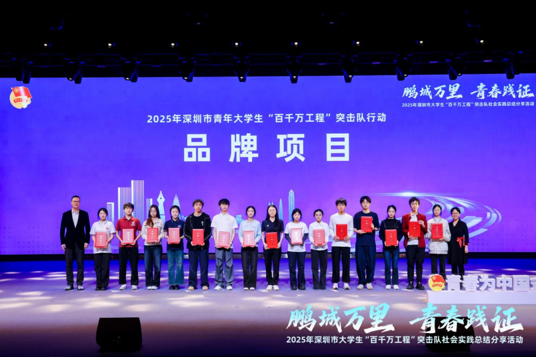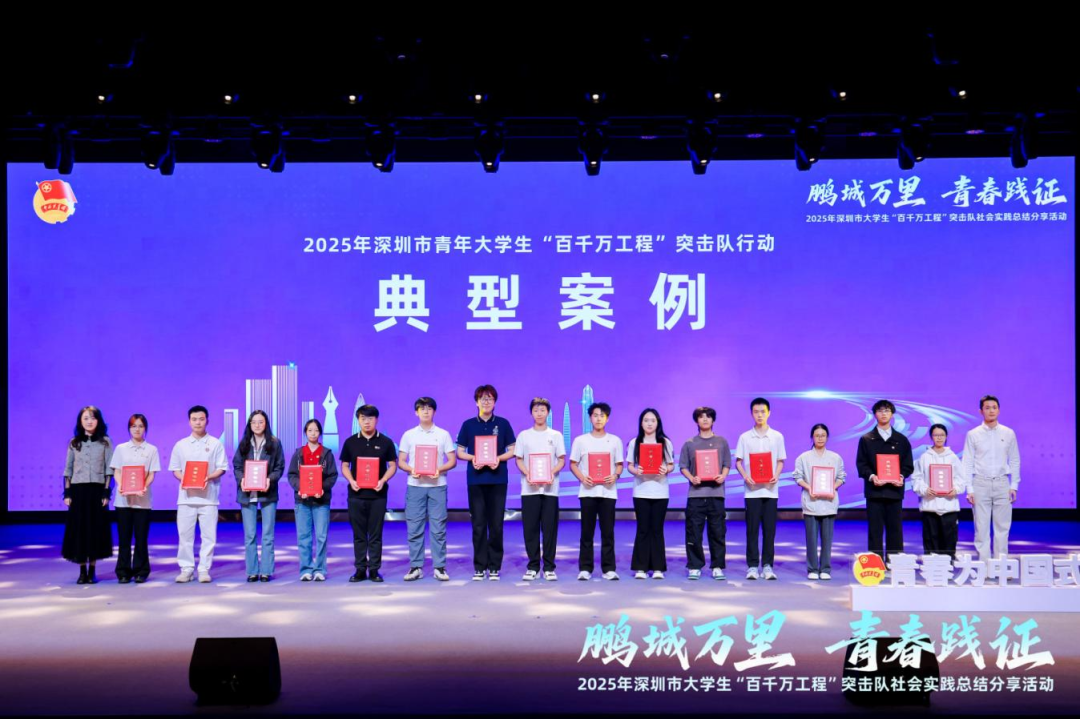 分享活动现场,进行了2025年深圳市青年大学生“百千万工程”突击队行动品牌项目和典型案例的颁奖。